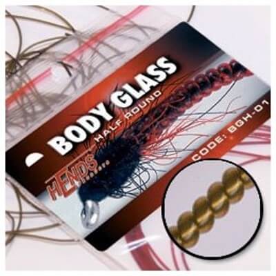 Olivověhnědý bodyglass tenký (klasický), HENDS BGK34, délka 2.5m. Sklovitě kulatá bužírka pro vázání různých druhů larev pakomárů, patentek, ke kroužkování nymf, tvorbu hřbítků malých mušek atd. Je určen především k tvorbě skleněného článkovaného tělíčka. Bodyglass je dodáván v originálním balení. Částečná průhlednost materiálu umožňuje podkladem stanovit světelnost.