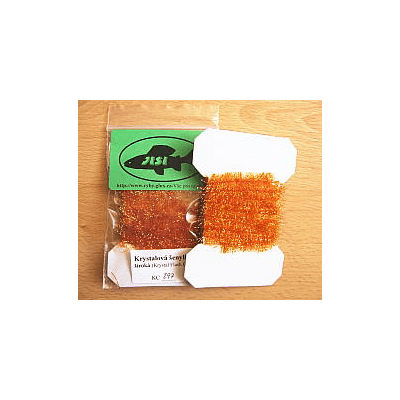 Oranžová(Pumkin) krystalová šenylka, široká, KC297, minimálně 1yds(91cm), zpravidla 1m, cca 12mm silná. Šenylka usnadní vaše vázání. Krystalová šenylka je velmi užívaná pro tvorbu blobů, lur, či streamerů. Nádherný materiál, který dává jemné odlesky a tím oživí mušku.