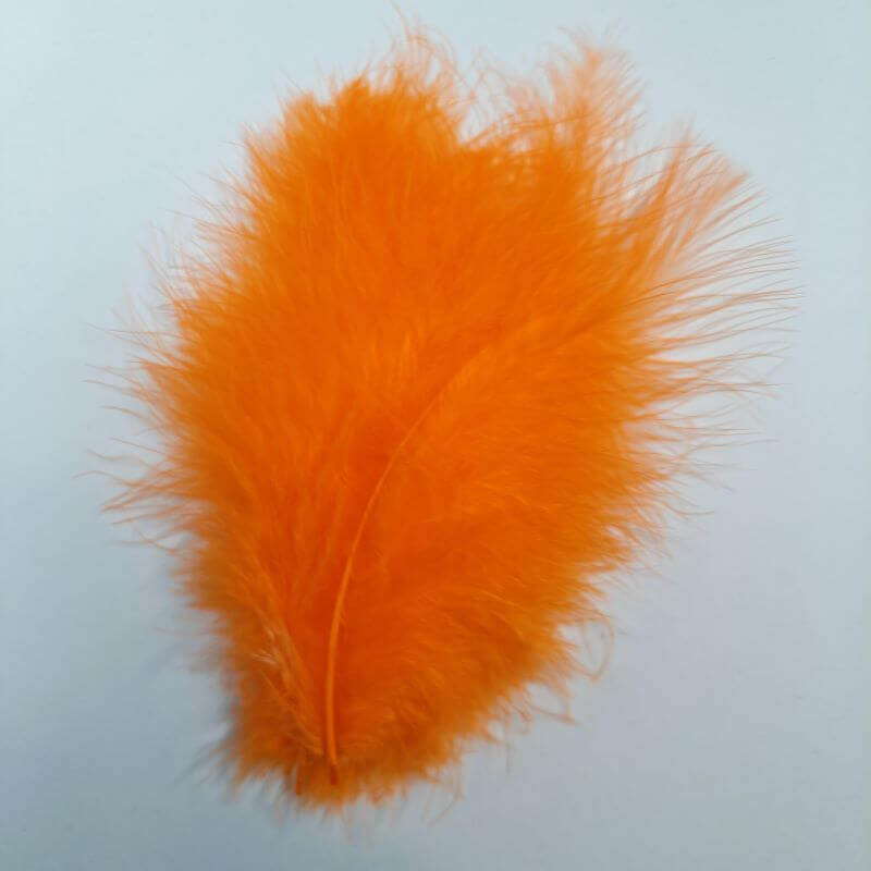 Oranžové signální(Fluo Orange) marabou, JISI, M1. 10 ks pírek, délka sáčku 15 cm. Marabou je vynikajícím materiálem pro tvorbu ocasků a křídel Vašich streamerů a mokrých mušek.