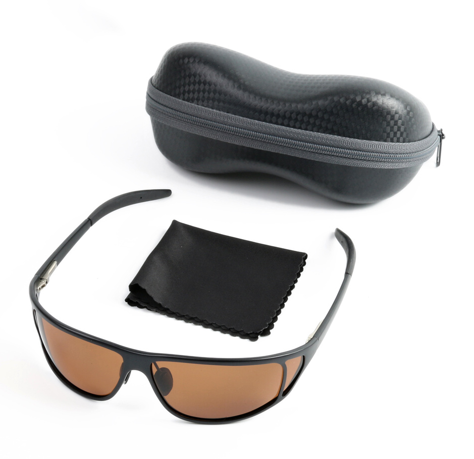 Polarizační sluneční rybářské brýle s tvrzenou vrtvou na čočce proti poškrábání. Nízká hmotnost s odpruženým kovovým rámem, perfektně a pevně drží, pohodlené pro celodenní nošení. Dodáváme s ochranným pouzdrem a hadříkem na čištění. Filtrace UV záření UV 400.