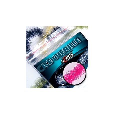 Růžová fluo. (signální) ICE CHENILLE šenylka, průměr 6mm, délka 1m, HENDS, CHI16-6. Žinylka se vyznačuje jemným, ale výrazným ultrafialovým ( ledovým ) třpytem, velmi účinným spoušrěčem záběrů. Žinylky určené především pro jezerní mušky typu Blobb a Booby, ale také na streamery určené pro chytání pstruhů duhových. Ve světě se také používají pro zhiotovení nástrah na steelheady a lososy.