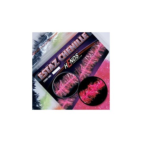 Růžová signální ESTAZ CHENILLE(lesklý barevný materiál) šenylka, průměr 1cm, délka 1m, HENDS, CHE16-10. Nejlepší na tvorbu BLOOBY Nymphs dále pak používejte k tvorbě výraznějších mušek a streamerů. S tímto materiálem dokážete vyrobit tělíčko mušky dle Vašich představ bez dubování.