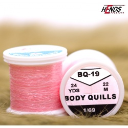 Růžový Body Quills, HENDS, BQ19, 22m, 1/69. Jemná, poloprůhledná lametka, která pomůže oživit Vašeho pakomára a samozřejmě i jiné mušky téměř k dokonalosti. Naviňte na háček tělíčkovou nit a přes nit vytvořte z tohoto materiálu tělíčko. Nejen rybám se Vaše muška bude líbit.