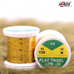 Flat Tinsel je nepostradatelný vazačský materiál, který díky svému lesku výrazně zvyšuje atraktivitu mušek. Je všestranný a lze ho využít na řadu částí mušky – od tělíčka, přes kroužkování, hřbítek až po jemné detaily jako křidélka.