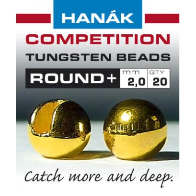 Tungstenové kuličky ROUND+ zlaté, HANÁK. Se speciálním výřezem, kvůli navléknutí na jigový i normální háček. Touto technologií je v kuličce ještě více materiálu než obvykle a je tedy ještě těžší. Těžké (těžší než běžný kov) kuličky, které dostanou Vaši nymfu rychleji ke dnu, kde na ni čekají ty největší ryby. Nymfové kuličky (korálky) mají na mušce dva úkoly. Prvním úkolem je upoutat rybu (leskem, barvou) a druhým úkolem je to, že tvoří zátěž, aby se Vaše nymfa dostala ke dnu, kde je nejúčinnější.